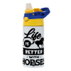 Life is Better with a Horses, Παιδικό παγούρι θερμό, ανοξείδωτο, με καλαμάκι ασφαλείας, πράσινο/μπλε (360ml) BPA FREE
