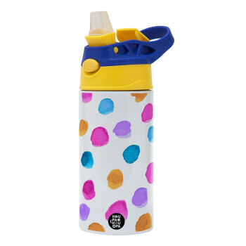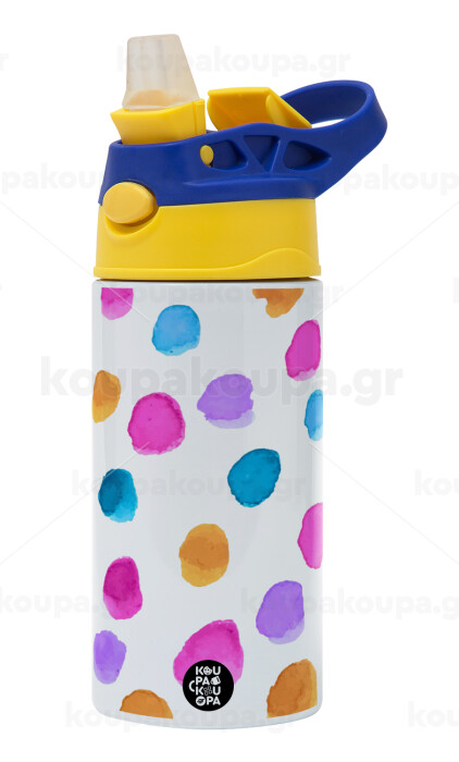 Watercolor dots, Παιδικό παγούρι θερμό, ανοξείδωτο, με καλαμάκι ασφαλείας, πράσινο/μπλε (360ml) BPA FREE