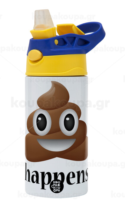 Shit Happens, Παιδικό παγούρι θερμό, ανοξείδωτο, με καλαμάκι ασφαλείας, πράσινο/μπλε (360ml) BPA FREE