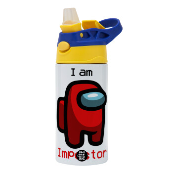 Among US i am impostor, Παιδικό παγούρι θερμό, ανοξείδωτο, με καλαμάκι ασφαλείας, πράσινο/μπλε (360ml) BPA FREE