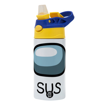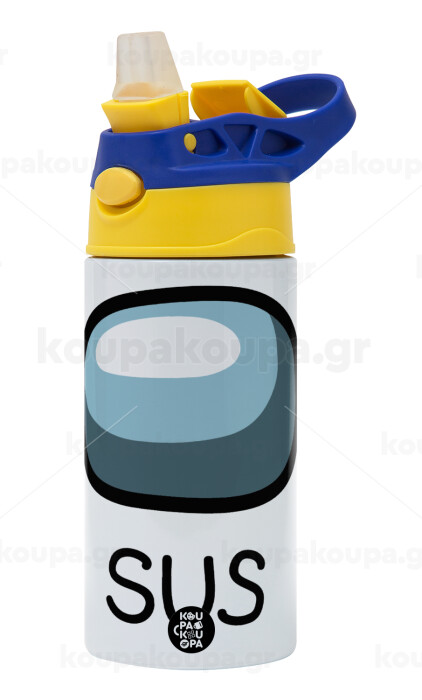Among US SUS!!!, Παιδικό παγούρι θερμό, ανοξείδωτο, με καλαμάκι ασφαλείας, πράσινο/μπλε (360ml) BPA FREE