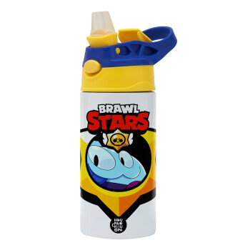 Brawl Stars Squeak, Παιδικό παγούρι θερμό, ανοξείδωτο, με καλαμάκι ασφαλείας, πράσινο/μπλε (360ml) BPA FREE