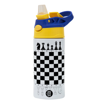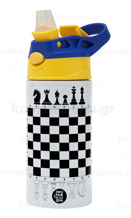 Σκάκι, Παιδικό παγούρι θερμό, ανοξείδωτο, με καλαμάκι ασφαλείας, πράσινο/μπλε (360ml) BPA FREE