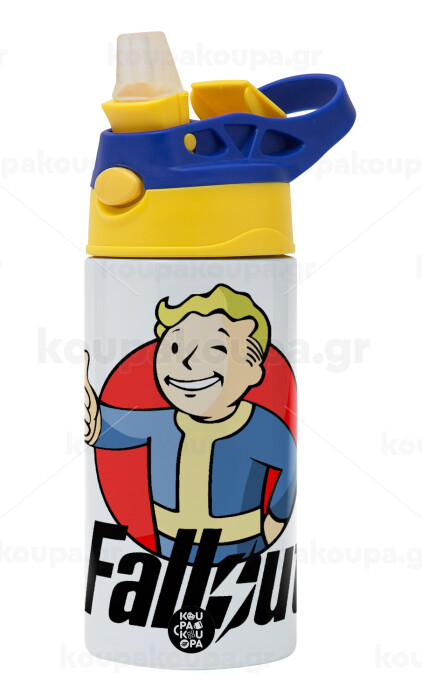 Fallout Vault Boy, Παιδικό παγούρι θερμό, ανοξείδωτο, με καλαμάκι ασφαλείας, πράσινο/μπλε (360ml) BPA FREE