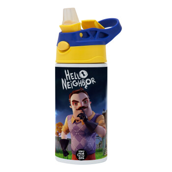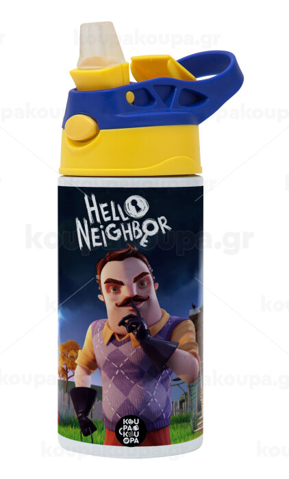 Hello Neighbor, Παιδικό παγούρι θερμό, ανοξείδωτο, με καλαμάκι ασφαλείας, πράσινο/μπλε (360ml) BPA FREE