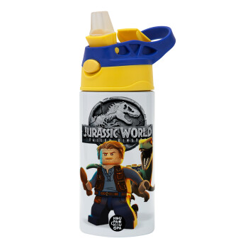 Jurassic world, Παιδικό παγούρι θερμό, ανοξείδωτο, με καλαμάκι ασφαλείας, πράσινο/μπλε (360ml) BPA FREE