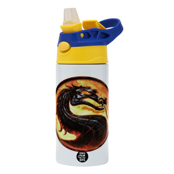 Mortal Kombat, Παιδικό παγούρι θερμό, ανοξείδωτο, με καλαμάκι ασφαλείας, πράσινο/μπλε (360ml) BPA FREE