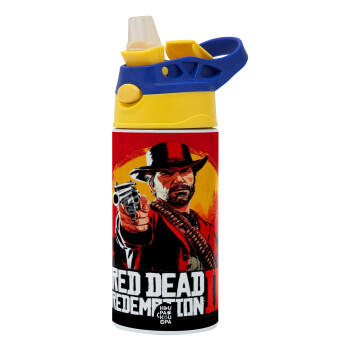 Red Dead Redemption 2, Παιδικό παγούρι θερμό, ανοξείδωτο, με καλαμάκι ασφαλείας, πράσινο/μπλε (360ml) BPA FREE