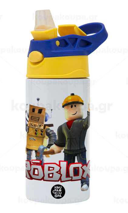 Roblox, Παιδικό παγούρι θερμό, ανοξείδωτο, με καλαμάκι ασφαλείας, πράσινο/μπλε (360ml) BPA FREE