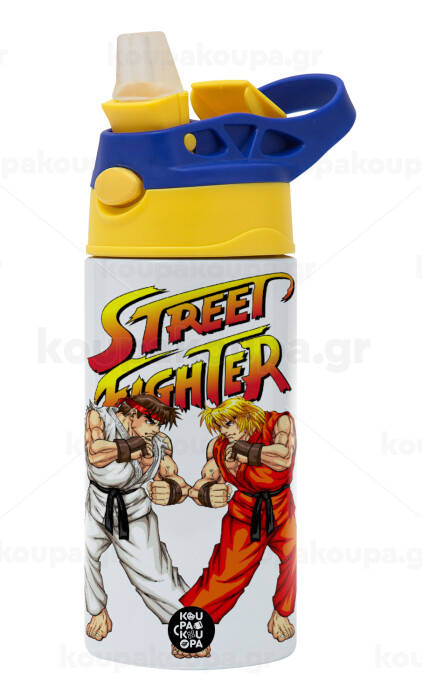 Street fighter, Παιδικό παγούρι θερμό, ανοξείδωτο, με καλαμάκι ασφαλείας, πράσινο/μπλε (360ml) BPA FREE