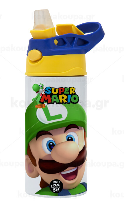 Super mario Luigi, Παιδικό παγούρι θερμό, ανοξείδωτο, με καλαμάκι ασφαλείας, πράσινο/μπλε (360ml) BPA FREE