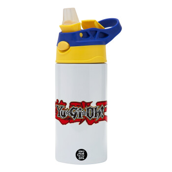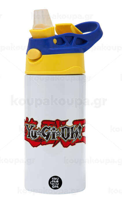 Yu-Gi-Oh, Παιδικό παγούρι θερμό, ανοξείδωτο, με καλαμάκι ασφαλείας, πράσινο/μπλε (360ml) BPA FREE