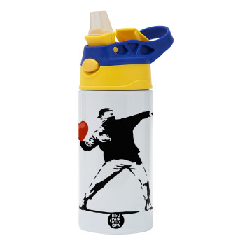 Banksy (The heart thrower), Παιδικό παγούρι θερμό, ανοξείδωτο, με καλαμάκι ασφαλείας, πράσινο/μπλε (360ml) BPA FREE