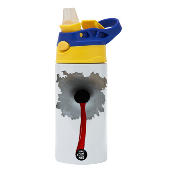 Bullet holes, Παιδικό παγούρι θερμό, ανοξείδωτο, με καλαμάκι ασφαλείας, πράσινο/μπλε (360ml) BPA FREE