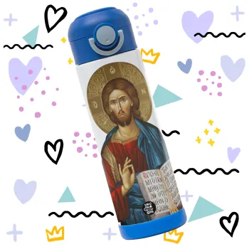 Ιησούς, Παιδικό παγούρι θερμό, ανοξείδωτο, με καλαμάκι ασφαλείας, ΜΠΛΕ (500ml)