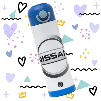 nissan, Παιδικό παγούρι θερμό, ανοξείδωτο, με καλαμάκι ασφαλείας, ΜΠΛΕ (500ml)
