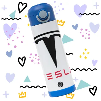 Tesla motors, Παιδικό παγούρι θερμό, ανοξείδωτο, με καλαμάκι ασφαλείας, ΜΠΛΕ (500ml)