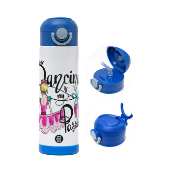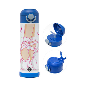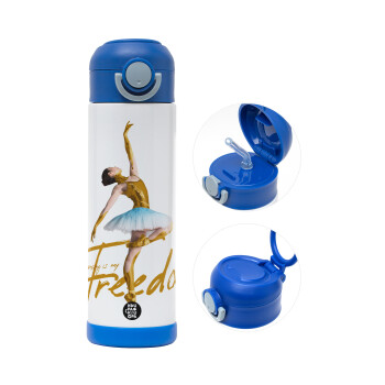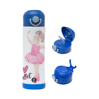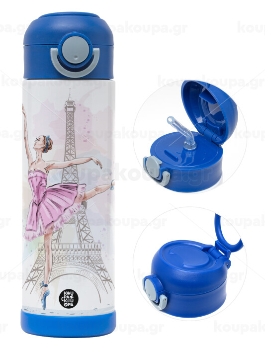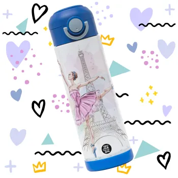 Ballerina in Paris, Παιδικό παγούρι θερμό, ανοξείδωτο, με καλαμάκι ασφαλείας, ΜΠΛΕ (500ml)