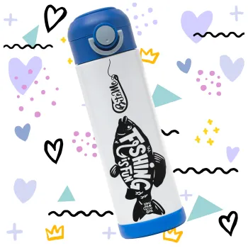 Fishing is fun, Παιδικό παγούρι θερμό, ανοξείδωτο, με καλαμάκι ασφαλείας, ΜΠΛΕ (500ml)