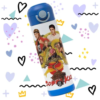 Cobra Kai tree, Παιδικό παγούρι θερμό, ανοξείδωτο, με καλαμάκι ασφαλείας, ΜΠΛΕ (500ml)