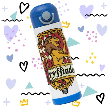 Gryffindor, Harry potter, Παιδικό παγούρι θερμό, ανοξείδωτο, με καλαμάκι ασφαλείας, ΜΠΛΕ (500ml)