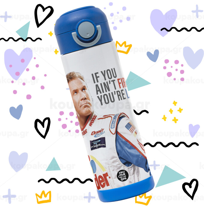 If You Ain't First You're Last Ricky Bobby, Talladega Nights, Παιδικό παγούρι θερμό, ανοξείδωτο, με καλαμάκι ασφαλείας, ΜΠΛΕ (500ml)