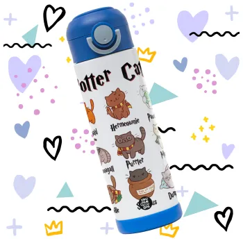 Potter Cats, Παιδικό παγούρι θερμό, ανοξείδωτο, με καλαμάκι ασφαλείας, ΜΠΛΕ (500ml)