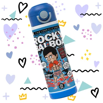 Rocky Balboa, Παιδικό παγούρι θερμό, ανοξείδωτο, με καλαμάκι ασφαλείας, ΜΠΛΕ (500ml)