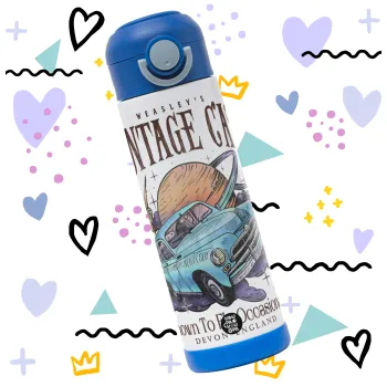 Wizard Flying Car, Παιδικό παγούρι θερμό, ανοξείδωτο, με καλαμάκι ασφαλείας, ΜΠΛΕ (500ml)