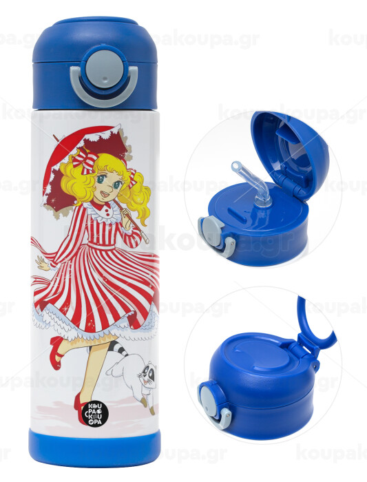 Candy, Παιδικό παγούρι θερμό, ανοξείδωτο, με καλαμάκι ασφαλείας, ΜΠΛΕ (500ml)