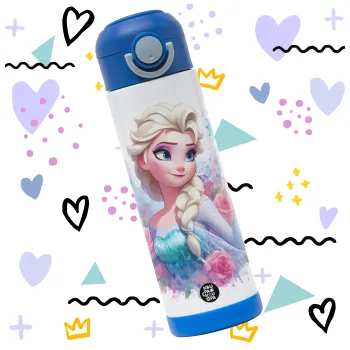 Elsa Princess, Παιδικό παγούρι θερμό, ανοξείδωτο, με καλαμάκι ασφαλείας, ΜΠΛΕ (500ml)