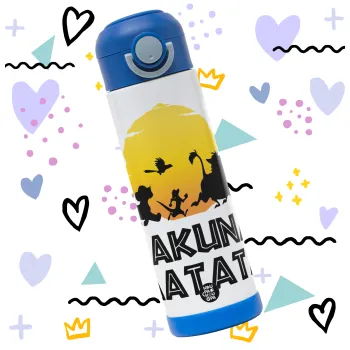 Hakuna Matata, Παιδικό παγούρι θερμό, ανοξείδωτο, με καλαμάκι ασφαλείας, ΜΠΛΕ (500ml)