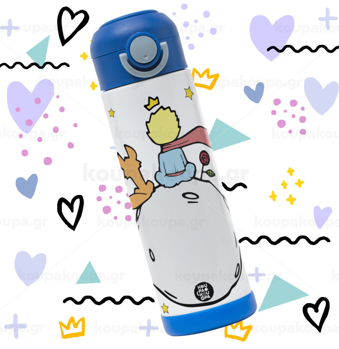 Little prince, Παιδικό παγούρι θερμό, ανοξείδωτο, με καλαμάκι ασφαλείας, ΜΠΛΕ (500ml)