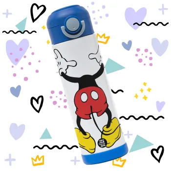Mickey hide..., Παιδικό παγούρι θερμό, ανοξείδωτο, με καλαμάκι ασφαλείας, ΜΠΛΕ (500ml)
