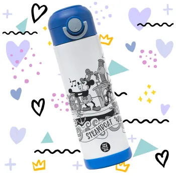 Mickey steamboat, Παιδικό παγούρι θερμό, ανοξείδωτο, με καλαμάκι ασφαλείας, ΜΠΛΕ (500ml)