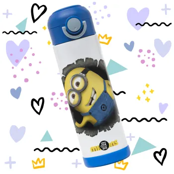 Minions hi, Παιδικό παγούρι θερμό, ανοξείδωτο, με καλαμάκι ασφαλείας, ΜΠΛΕ (500ml)