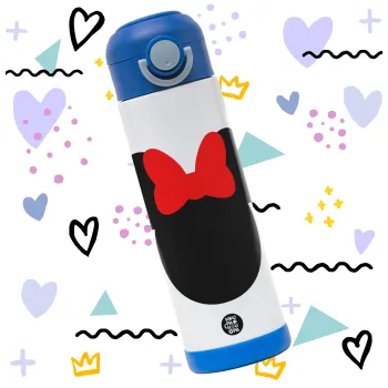 Minnie head, Παιδικό παγούρι θερμό, ανοξείδωτο, με καλαμάκι ασφαλείας, ΜΠΛΕ (500ml)