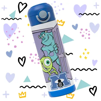 Monster inc, Παιδικό παγούρι θερμό, ανοξείδωτο, με καλαμάκι ασφαλείας, ΜΠΛΕ (500ml)