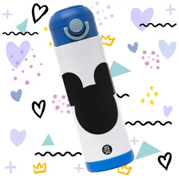 mouse man, Παιδικό παγούρι θερμό, ανοξείδωτο, με καλαμάκι ασφαλείας, ΜΠΛΕ (500ml)
