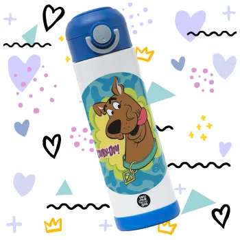 Scooby Doo, Παιδικό παγούρι θερμό, ανοξείδωτο, με καλαμάκι ασφαλείας, ΜΠΛΕ (500ml)