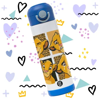 Simba, lion king, Παιδικό παγούρι θερμό, ανοξείδωτο, με καλαμάκι ασφαλείας, ΜΠΛΕ (500ml)