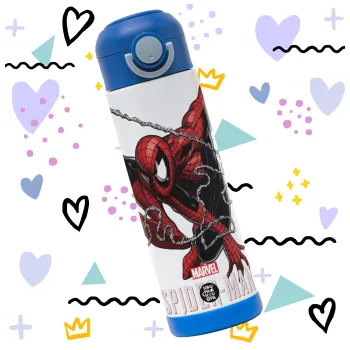 Spider-man, Παιδικό παγούρι θερμό, ανοξείδωτο, με καλαμάκι ασφαλείας, ΜΠΛΕ (500ml)