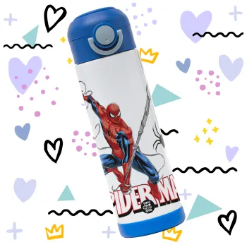 Spiderman fly, Παιδικό παγούρι θερμό, ανοξείδωτο, με καλαμάκι ασφαλείας, ΜΠΛΕ (500ml)