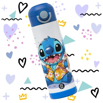 Stitch Ice cream, Παιδικό παγούρι θερμό, ανοξείδωτο, με καλαμάκι ασφαλείας, ΜΠΛΕ (500ml)