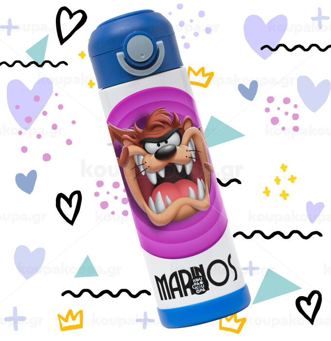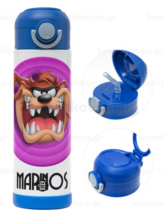 Taz, Παιδικό παγούρι θερμό, ανοξείδωτο, με καλαμάκι ασφαλείας, ΜΠΛΕ (500ml)
