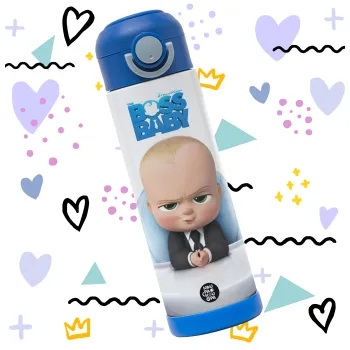 The boss baby, Παιδικό παγούρι θερμό, ανοξείδωτο, με καλαμάκι ασφαλείας, ΜΠΛΕ (500ml)