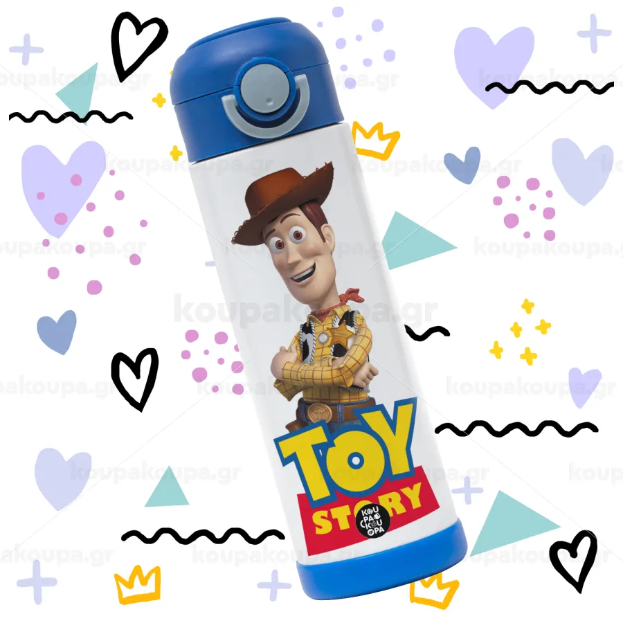 Woody cowboy, Παιδικό παγούρι θερμό, ανοξείδωτο, με καλαμάκι ασφαλείας, ΜΠΛΕ (500ml)