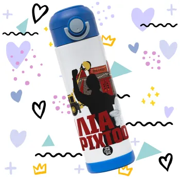 Ηλία ρίχτο!, Παιδικό παγούρι θερμό, ανοξείδωτο, με καλαμάκι ασφαλείας, ΜΠΛΕ (500ml)