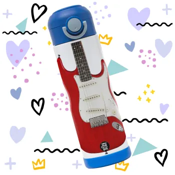 Guitar stratocaster, Παιδικό παγούρι θερμό, ανοξείδωτο, με καλαμάκι ασφαλείας, ΜΠΛΕ (500ml)
