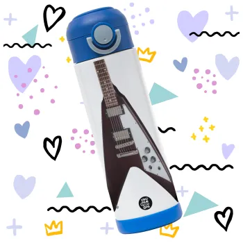 Guitar flying V, Παιδικό παγούρι θερμό, ανοξείδωτο, με καλαμάκι ασφαλείας, ΜΠΛΕ (500ml)